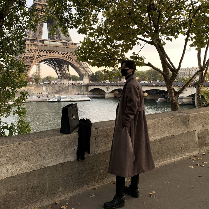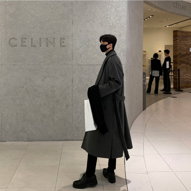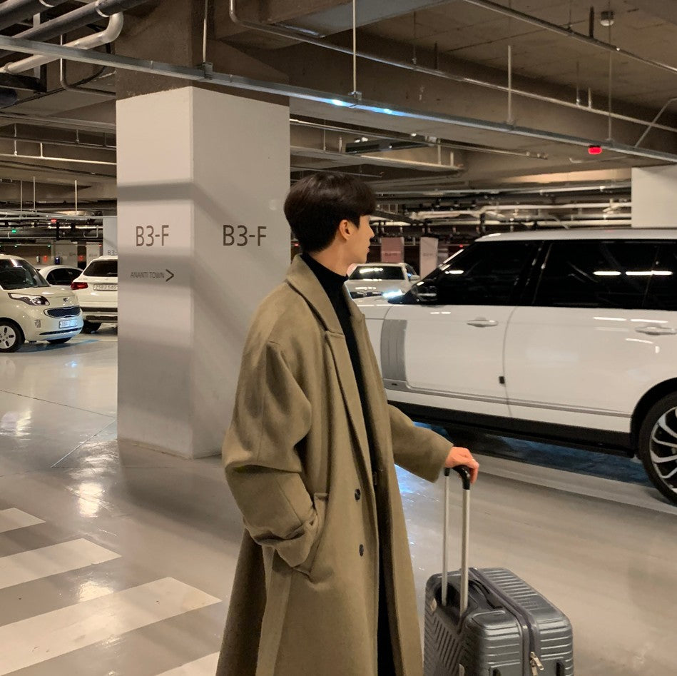 Men's Mid Length Winter Thick Cashmere Windbreaker